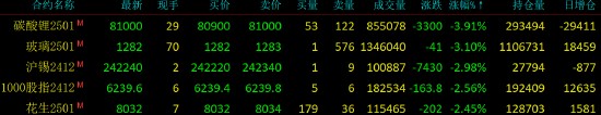 2024年11月14日,国内期货主力合约涨跌互现,纸浆、液化石油气(LPG)涨超1%。跌幅方面,碳酸锂跌近4%,玻璃跌超3%,沪锡、沪银、红枣、花生、20号胶、生猪、国外铜、沪铜跌超2%。